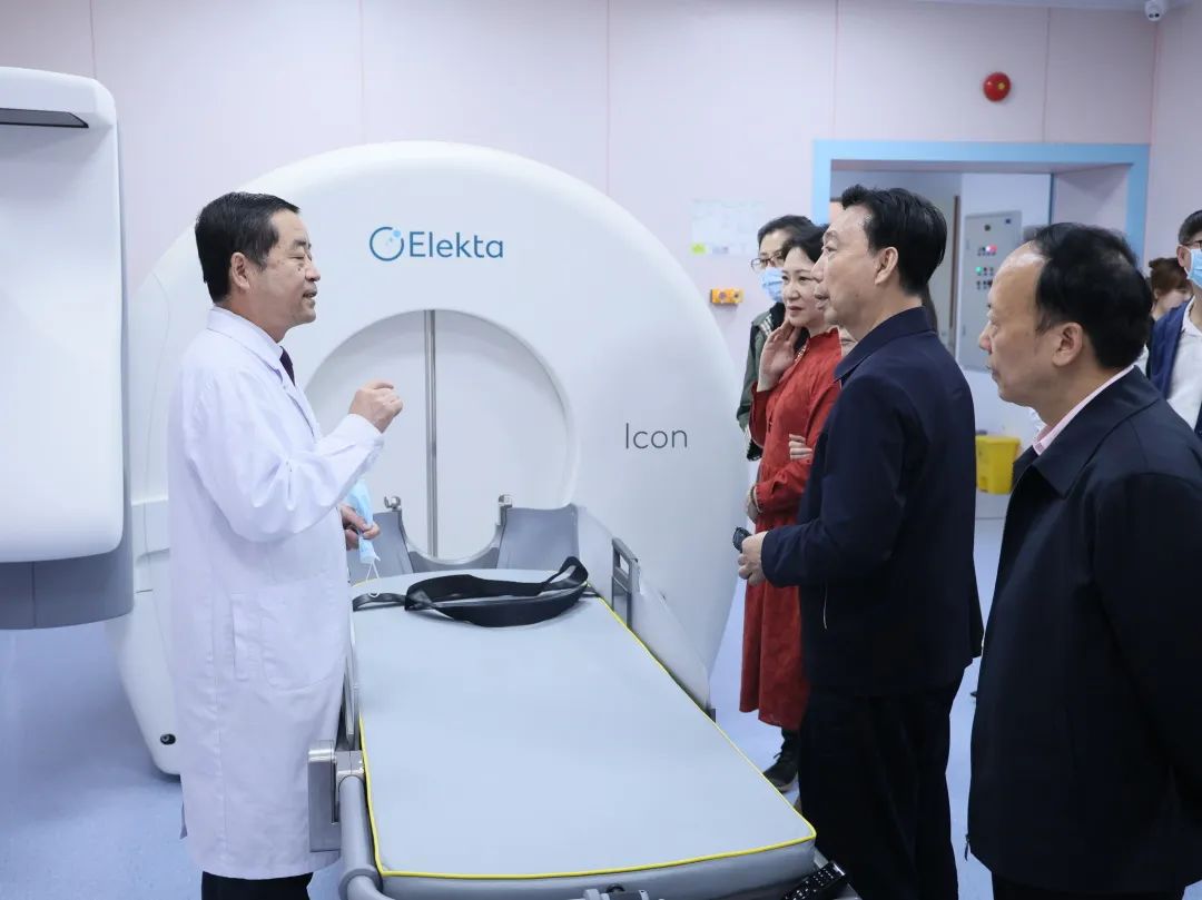 在參觀中,白書忠部長還了解到前海人壽廣州總醫(yī)院引入了華南地區(qū)最新型的頭部伽瑪?shù)叮@是目前國際上最先進的腫瘤放療技術之一,能夠在治療頭部腫瘤的同時最大程度地保護患者的健康組織。