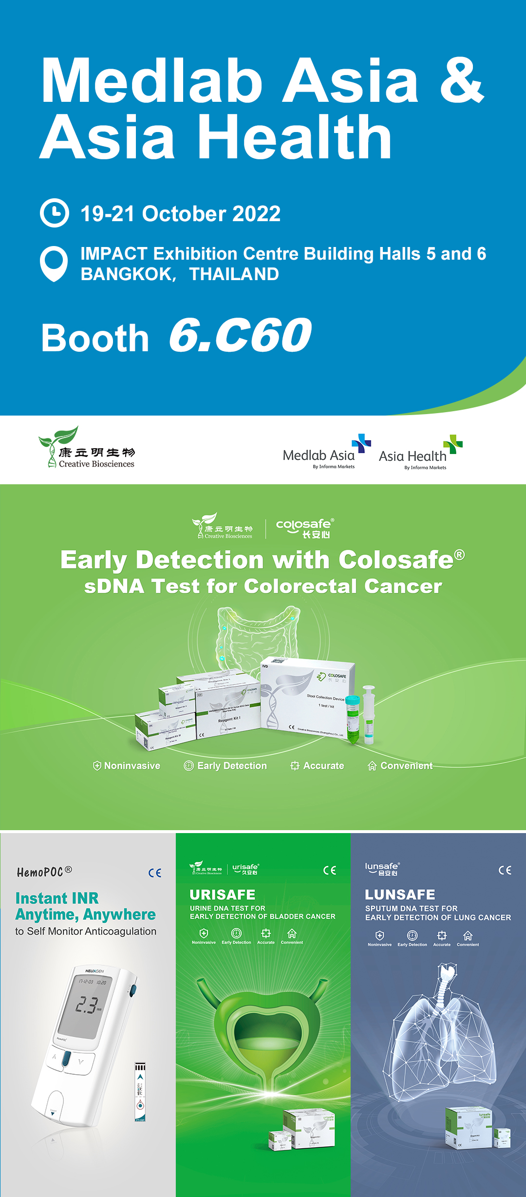 本次盛會,康立明生物將攜長安心®糞便DNA腸癌檢測、久安心®膀胱癌基因檢測、會安心®肺癌基因檢測、全自動樣本預(yù)處理儀以及康立明全資子公司好芝生物產(chǎn)品HemoPOC®凝血檢測系統(tǒng)赴展。