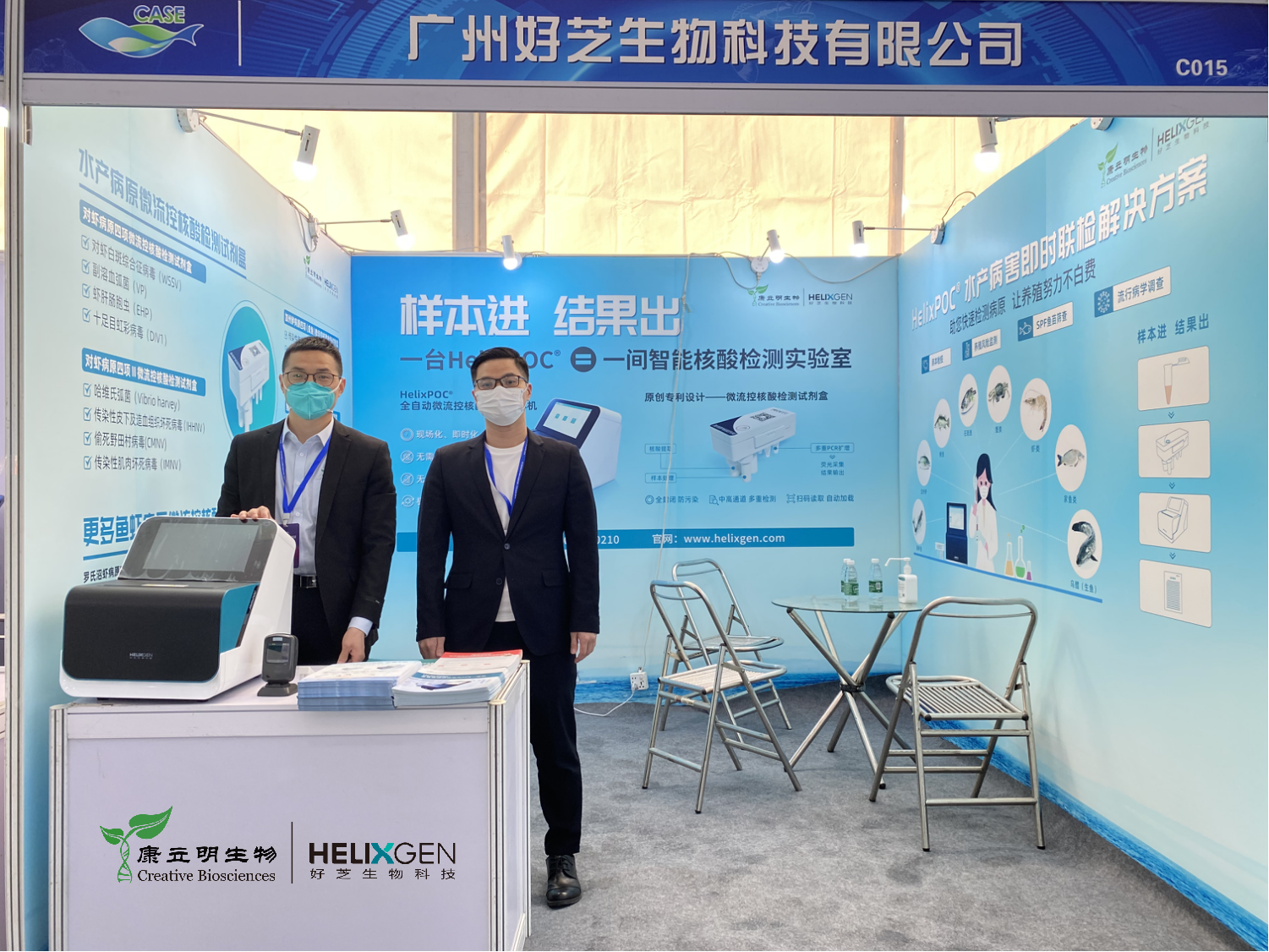 本次展會,康立明生物全資子公司好芝生物攜帶HelixPOC®全自動微流控?zé)晒?/span>PCR一體機及HelixPOC®水產(chǎn)病原微流控核酸檢測試劑盒赴展。
