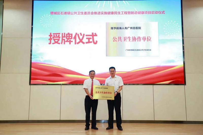 7月26日,廣州市增城區(qū)石灘鎮(zhèn)在前海人壽廣州總醫(yī)院舉行增城區(qū)石灘鎮(zhèn)公共衛(wèi)生委員會推進實施健康民生工程暨腸道健康項目啟動儀式,正式拉開了石灘鎮(zhèn)常住適齡人群腸道健康檢查項目的序幕。